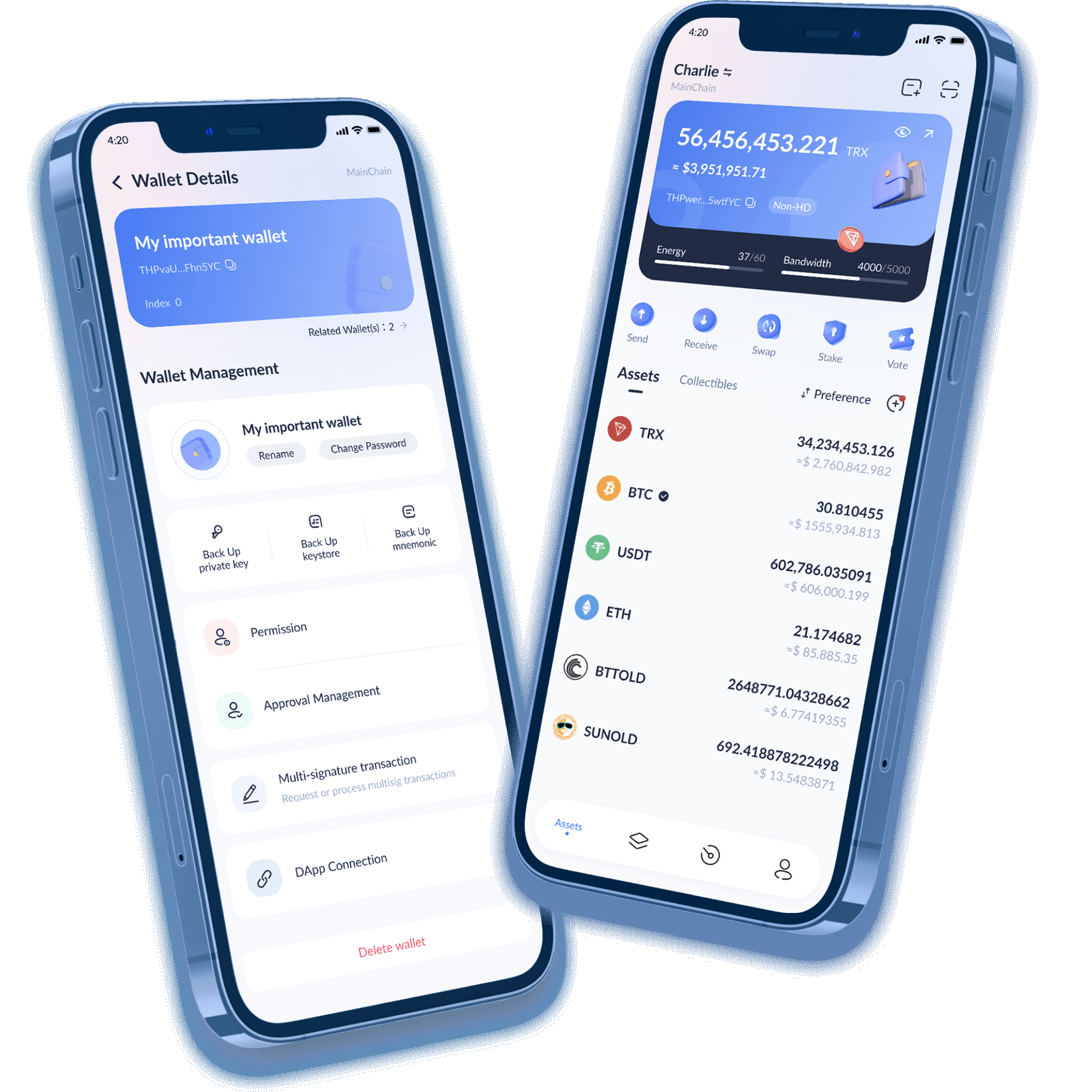 一键创建/导入钱包,支持HD钱包,支持蓝牙导入Ledger钱包,还可以创建多个钱包账户,简便易用,轻松上手。